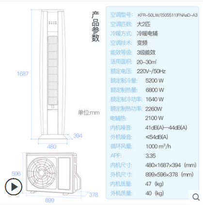 • 商品名称:Gree/格力 KFR-50LW/(505511)FNAaD-A3大2匹变频客厅空调立式i酷